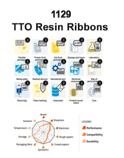 1129 is the standard resin ribbon for Corner Edge / TTO / Near Edge printers. It has become a reference for its sharpness. It is also unequalled as regards to its high level of mechanical resistance and its ability to print at high speed.