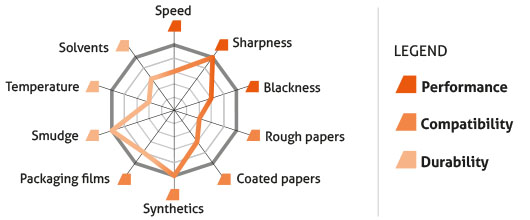 5160 is the Premium resin ribbon for Corner Edge / TTO / Near Edge printers. It has become a reference for its sharpness. It is also unequalled as regards to its high level of mechanical resistance and its ability to print at high speed.