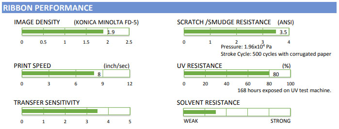 WR05 is a standard flat head wax/resin ribbon with an excellent scratch and smear resistance. It has a good transferability on to a wide variety of label stocks and can print using a low print head setting.