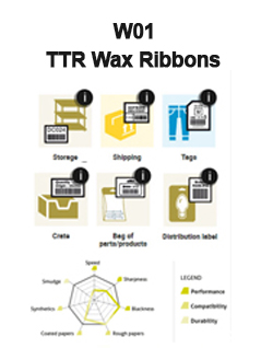 W01 is the most competitive wax thermal ribbon of the range. The very high sensitivity of the ink allows printing with low levels of energy with less stress on the printhead. W01 is therefore the ideal solution for applications particularly sensitive to the quality/price ratio.